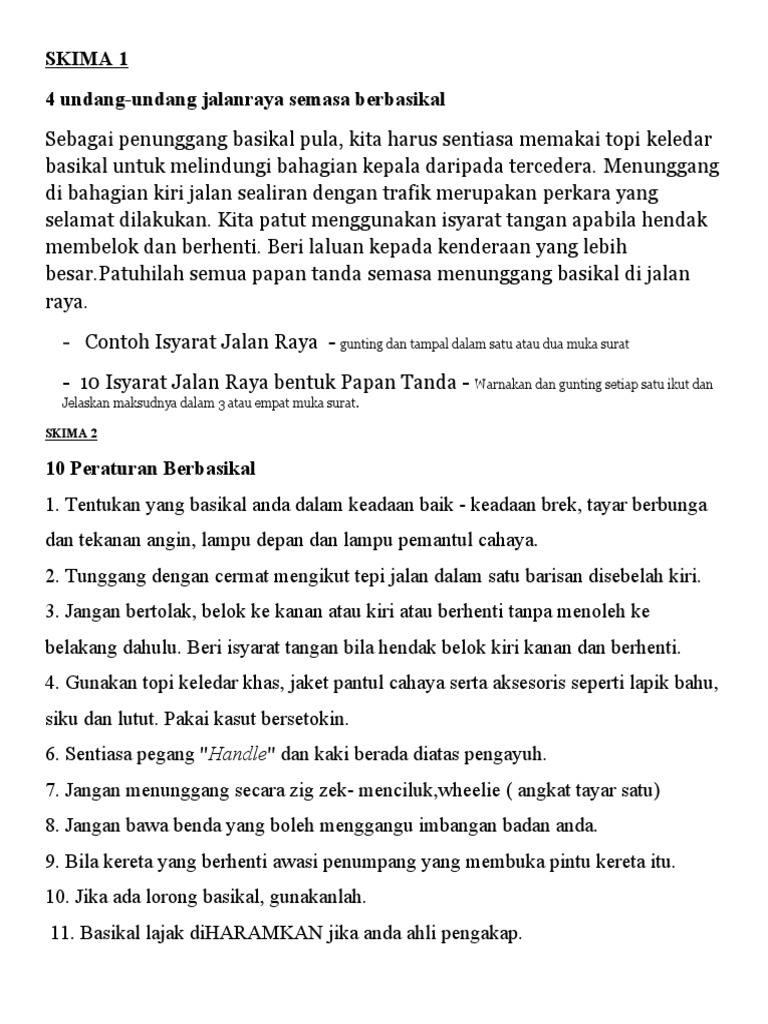 Tuliskan Peraturan Semasa Menunggang Basikal